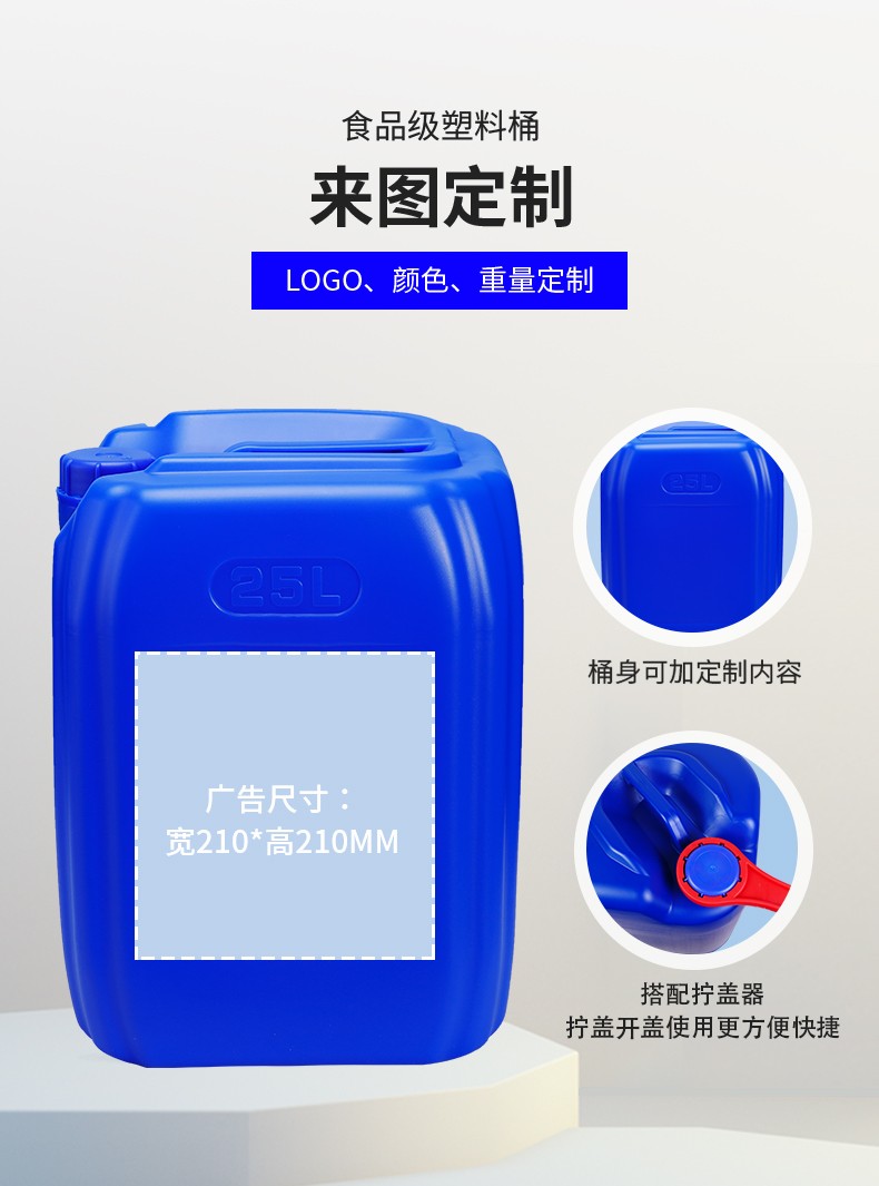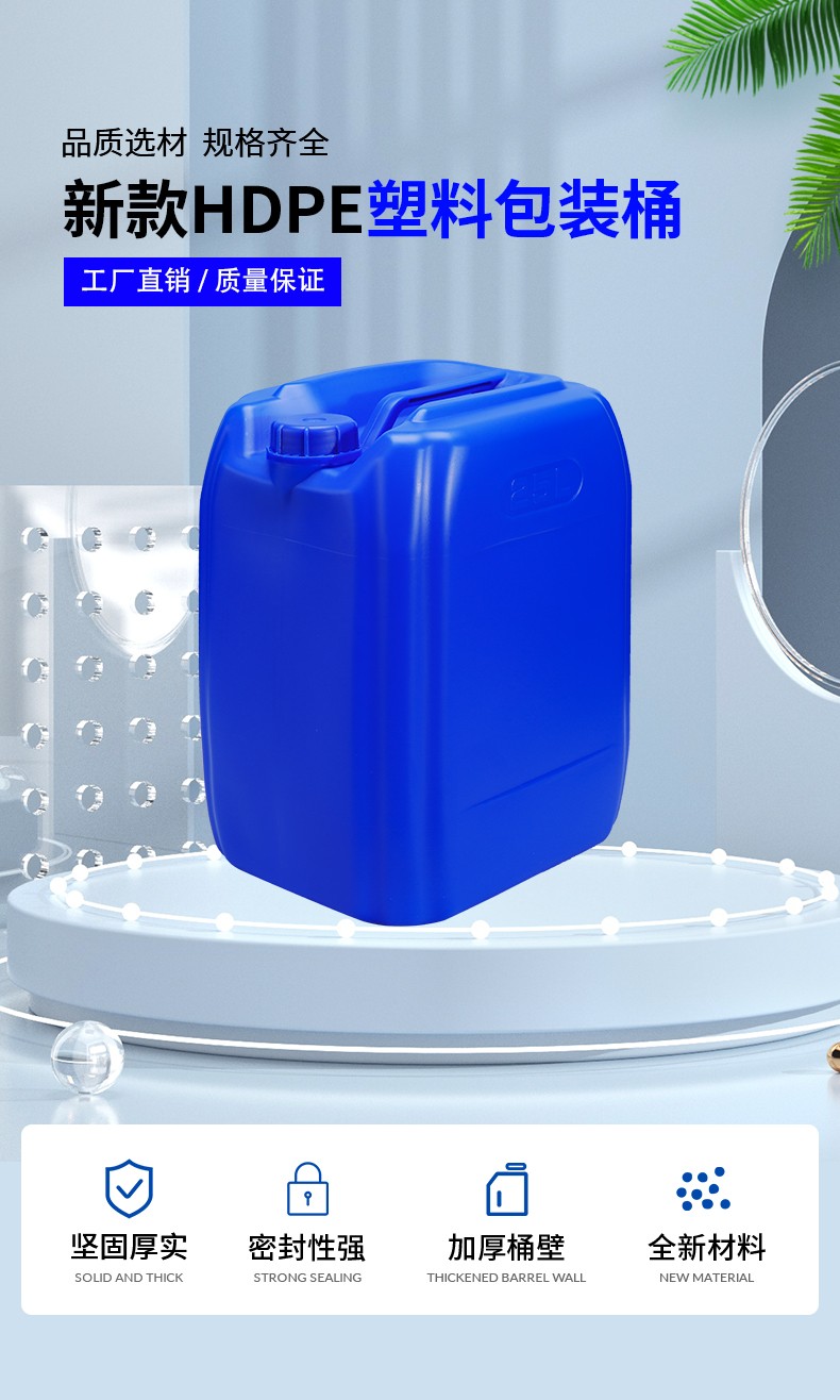 采用全新聚乙烯原料吹塑工藝制作而成,具有耐腐蝕,耐酸堿性,小口設計密封性能強,廣泛應用于化工清潔劑,表面處理劑、輔料添加劑、飼料添加劑, 樹脂農藥,日用化學品,聚氨酯、膠黏劑 消泡劑 電解液等各行業液體包裝。