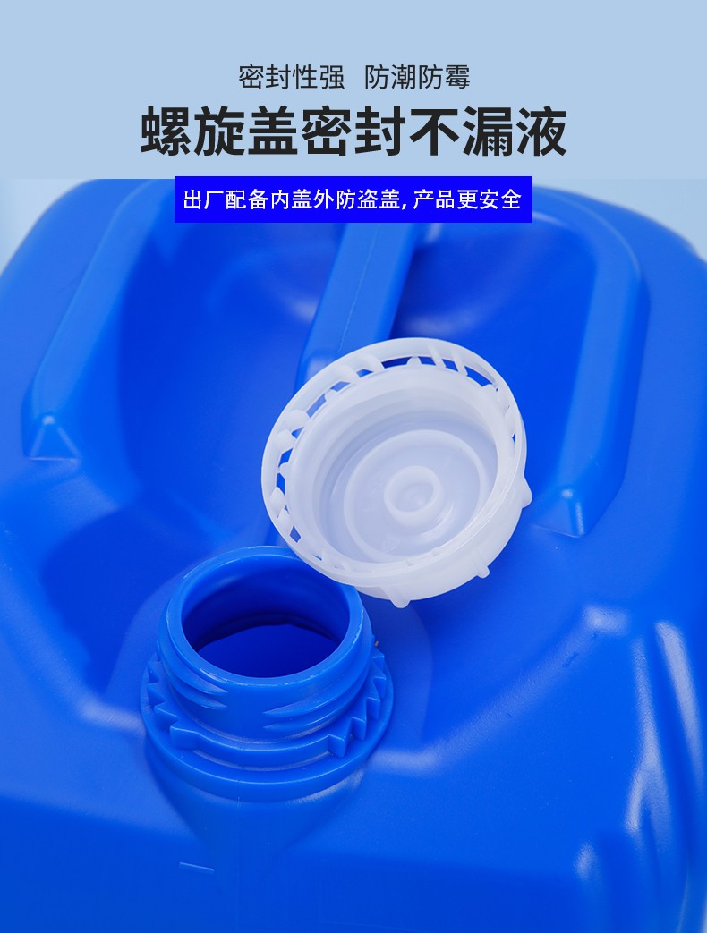 采用全新聚乙烯原料吹塑工藝制作而成,具有耐腐蝕,耐酸堿性,小口設計密封性能強,廣泛應用于化工清潔劑,表面處理劑、輔料添加劑、飼料添加劑, 樹脂農藥,日用化學品,聚氨酯、膠黏劑 消泡劑 電解液等各行業液體包裝。